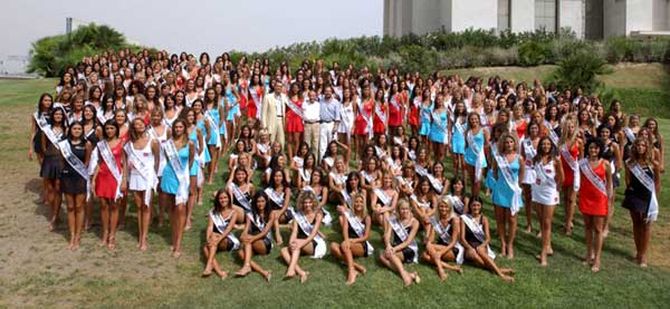 Stamane il momento della grande foto di gruppo in compagnia anche del patron Enzo Mirigliani assieme alla figlia Patrizia, al Sindaco, all'assessore Gabrielli e al regista Piergiorgio Del Moro. Tutte le 246 ragazze hanno occupato la collinetta accanto al Palacongressi mettendosi pazientemente in fila poi anche a gruppi regionali. Una sgargiante "M" disegnata dai body rossi bianchi e blu è una prova generale per le tante coreografie che in queste giorni le ragazze dovranno interpretare. Il colpo d'occhio è senz'altro la misura per cui si vede quanto il loro numero sia consistente e quanta bellezza risieda in ognuna di loro.