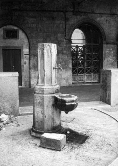La fontana in stile neogotico sita nell´angolo nord-est del chiostro di S. Francesco, detto anche piazza delle erbe, fu gravemente danneggiata da un atto vandalico alla fine di Maggio 2001.