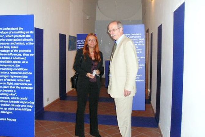 Linaugurazione della mostra su Thomas Herzog Reacting Skin è stata preceduta da una conferenza, introdotta dal rappresentante dellUniversità di Camerino professor Massimo Perriccioli, che ha fatto le veci del Rettore e del suo delegato che non sono potuti essere presenti.