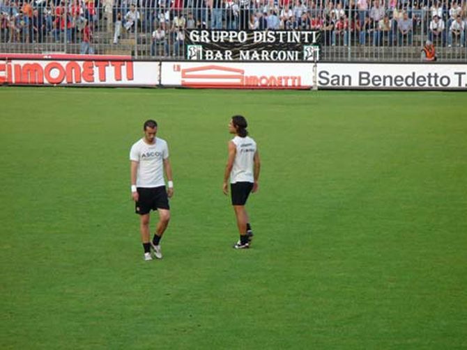 Quagliarella più di Bruno si propone in avanti . Ma sicuramente è Pinga l’asso nella manica dei granata. Mudingayi frena le incursioni in area del veloce Modesto che appunto non riesce a passare la linea di metà campo. L’Ascoli gioca contratto e, soprattutto, mancano le fasce. Quella di sinistra è praticamente ferma. Antonelli però al 18’ si sveglia e, finalmente, ci prova. La mano di Sorrentino prima e la traversa poi negano al bianconero la gioia del gol. Il Toro è più forte è si vede. E al 32’ il gol di Quagliarella gela gli animi del Del Duca.