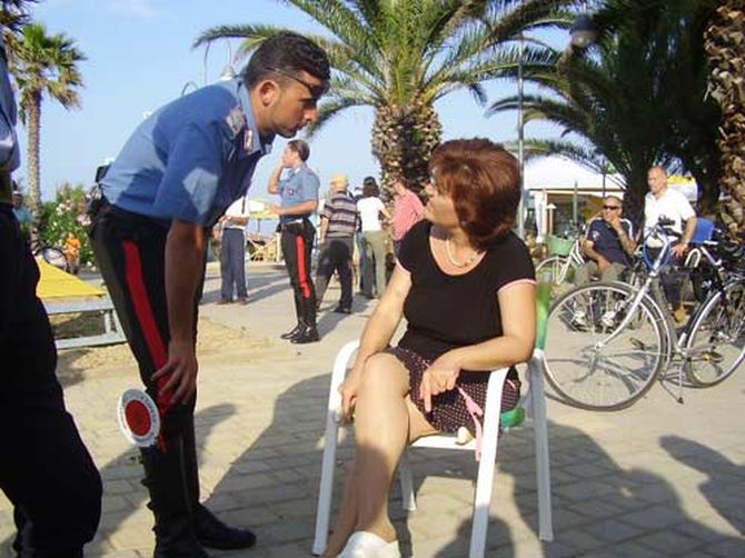 Io non ho niente contro le bancarelle - obbietta la Di Girolamo , solo dopo aver deposto la mazza - ma qui bisogna lavorare tutti e se ci si copre la visuale dello chalet noi dobbiamo reagire. A dire il vero la proprietà del Malibù, già un paio di mesi fa, in una delle innumerevoli riunioni tra le diverse parti aveva espresso chiaramente la sua posizione in materia. Verso le 19 il Sig. Apostoli smontava tutto e ripartiva. Io ero venuto qui per montare la bancarella e mi sono trovato davanti una cinquantina di persone ad osservarmi. Ricevendo qualche velata minaccia. E al posto indicato sedevano due signore. Non ci sto ad essere umiliato. Per cui vado via.