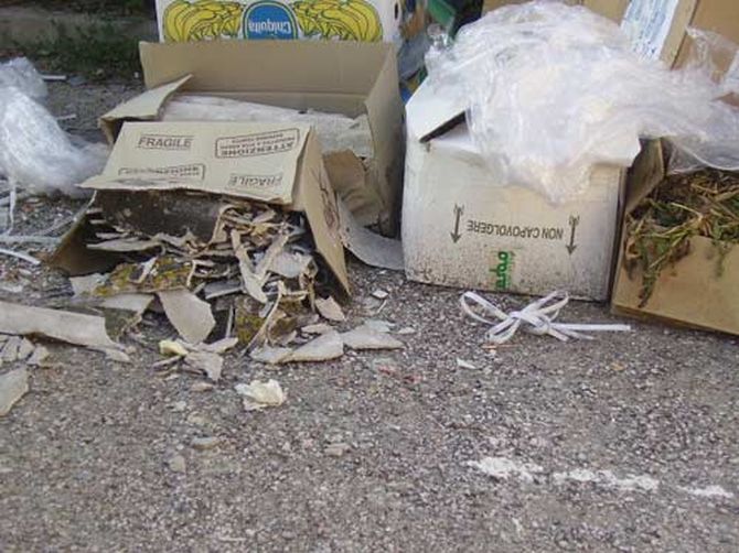 Se vi trovate a passare dalle parti di Porto dAscoli, precisamente in Via Pasubio, 10 nello stesso piazzale del nuovo supermercato 3°, ebbene vi consigliamo di girare alla larga. Difatti, in un angolo, è sta aperta una piccola discarica a cielo aperto fatta di cartoni di varia natura con provenienza da Barcellona. Oltre a residui cartacei di varia fattura. E fin qui tutto nella anormale normalità dei nostri tempi. Ma questa mini discarica ha in sé qualcosa di altamente pericoloso. Ovvero quattro cartoni pieni di materiale eternit buttato alla rinfusa con pezzi ben in vista.