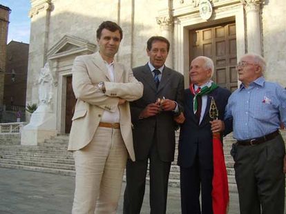 Da sx; l'Ass. Lorenzetti, il Vice Sindaco Piunti, il Pres.Prov.ANPI Tito Alessandrini,l'ex partigiano,Teodoro Vulpinai