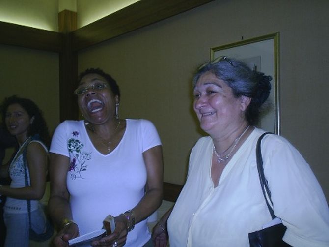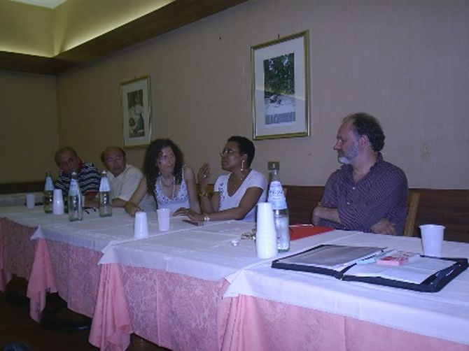 Una breve ma intensa apparizione quella di Dee Dee Bridgewater al convegno-conferenza dal tema: Linterpretazione della canzone di Cant(autore), tenutosi nel pomeriggio presso lHotel Calabresi. Breve sia a causa del ritardo del suo arrivo in città, sia del fatto che subito dopo lintervento si è dovuta recare alle prove. Intenso perché in meno di mezzora, DDB, al secolo Denise Garrett, ha raccontato i suoi più grandi amori: il suo paese e la passione per la canzone francese. Ma non solo infatti ha raccontato il suo incontro casuale con Leo Ferrè, il suo progetto di fare un disco in lingua francese e il suo rifiuto verso lattuale governo americano, di cui non ha voluto neppure nominare il presidente.