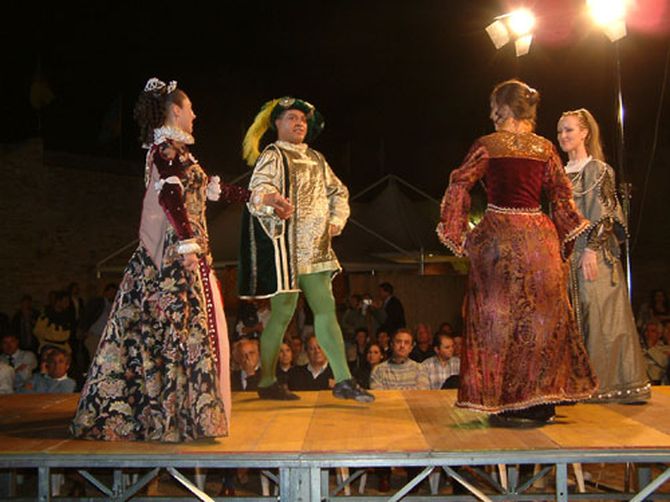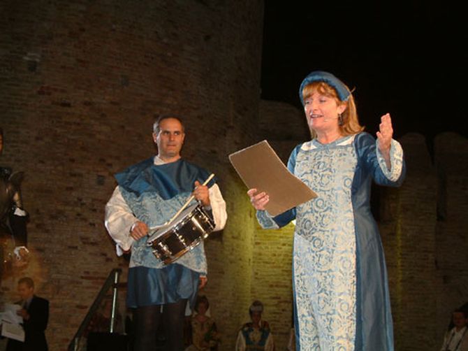 Dopo i saluti di Isopi e il suo invito a visitare e vivere il Piceno, e del Primo cittadino di Acquaviva Picena è iniziata la passerella dei costumi depoca delle varie sartorie in gara seguendo rigorosamente nelluscita lordine storico di ambientazione del costume stesso: dal Primo Medioevo fino al periodo risorgimentale.