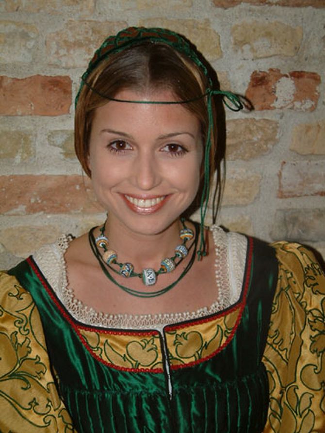 La signora Stefania Menghini, ha presentato un costume interamente ricamato a mano con filato doro , jais oro, argento e rosso chiaro (maggiori dettagli nellintervista esclusiva realizzata dal www.ilquotidiano.it)