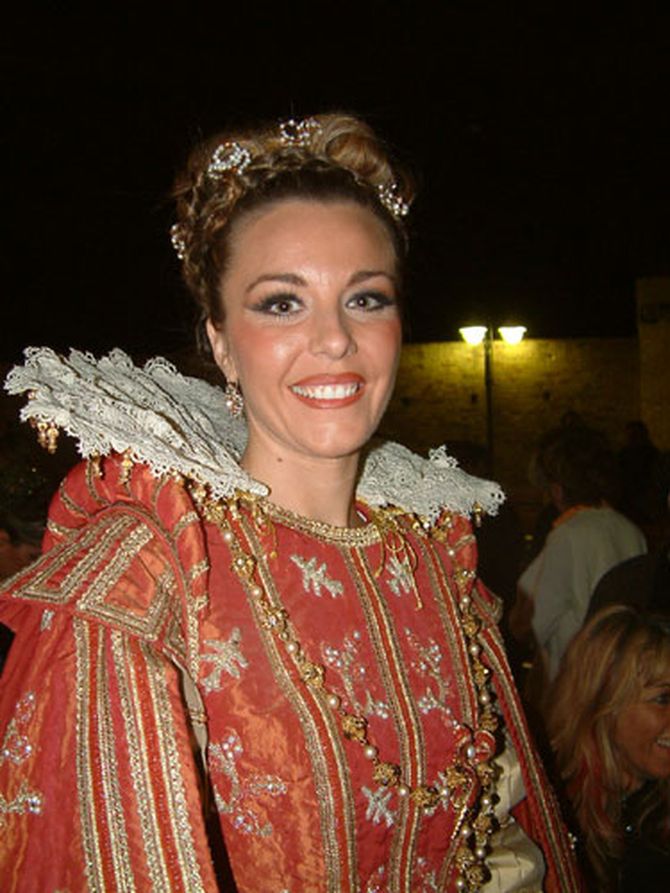 Il costume è stato realizzato seguendo un ritratto di Margherita di Cosimo II dei Medici 1612-1679 - Giusto Sustermans Galleria degli Uffizi.