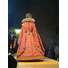 Si tratta di un costume particolarmente ricco, di foggia spagnola realizzato in tabi incarnato. Interamente ricamato a mano con filato doro , jais oro, argento e rosso chiaro. Il disegno del ricamo fedelmente riprodotto è un piccolo motivo floreale con Rametto fiorito dal gambo arricciato, secondo la moda dellepoca.