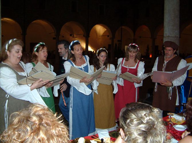 Oltre 300 invitati per il suggestivo banchetto. Autorità, tour operator, giornalisti italiani ed esteri hanno potuto gustare una cena rigorosamente di piatti della tradizione del passato e allietata da spettacoli e musica medievale.