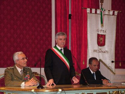 il Generale Rolando Mosca Moschini, il sindaco di Recanati Fabio Corvatta e l'avvocato Cesare Micheli.