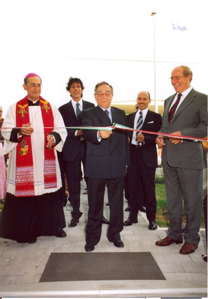 il taglio del nastro con il vescovo Montevecchi , il presidente Gibellieri ed il presidente e fondatore dellazienda Elio Mastromonaco
