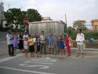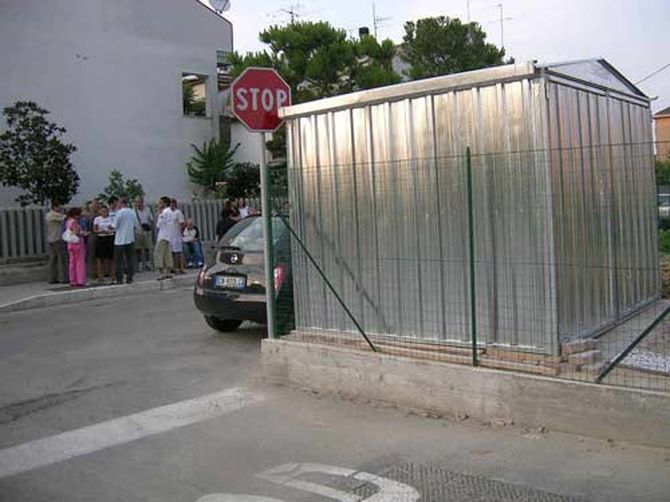 Lo sa che quando piove larea est di via Tronto diventa una grande pozzanghera piena di fango? Lo sa che cè un grande giardino dietro le case a sud di via Tronto dove non ci si può andare perché non cè un ingresso? Per concludere, caro Sindaco, la ringraziamo per il mostro ecologico di lamiera che è nato nellangolo del campo di pomodori e granturco. Già lei non lo sa, o non lo vuole sapere, che nel lager ben recintato cè anche una torretta a mo di casamatta? La ringraziamo per lo spettacolo indecente del mostro ecologico. E grazie anche per il pericolo che il mostriciattolo di lamiera procurerà alla circolazione, considerato che copre la visuale alle automobili proprio sullo stop.