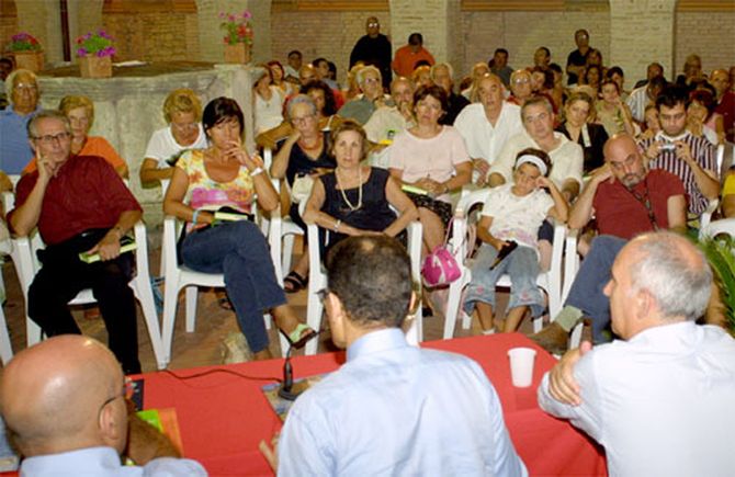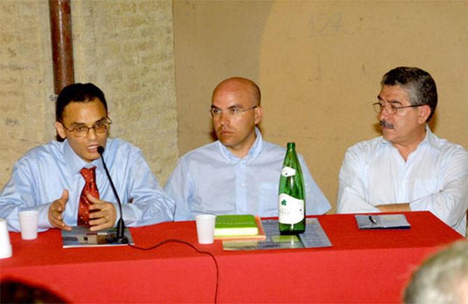 Fatto oggetto ripetutamente di una serie minacce per la vita, storia che ha raccontato in unaltra opera e che viene nuovamente resa pubblica in questo suo ultimo, lautorevole intellettuale non si è limitato a parlare dei contenuti del libro ma ha spaziato sulle questioni di più scottante attualità con riferimenti precisi e circostanziati partendo dalla realtà degli ultimi attacchi terroristici a Londra e Sharm el Sheikh per affrontare la più generale questione della guerra globale ha detto che stiamo vivendo. Introdotto dal sostituto procuratore della Repubblica di Ascoli Piceno, dottor Ettore Picardi e nel suggestivo scenario del chiostro del convento di San Giacomo della Marca, il sindaco di Monteprandone Bruno Menzietti ha ricordato come lo stesso francescano sia stato un apostolo di pace. Ed i presenti hanno percepito il riferimento come una sorta dinvocazione ad una rinnovata protezione per il nostro tempo.