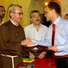 Al termine della serata, sponsorizzata dallhotel San Giacomo di Monteprandone e realizzata dalla libreria Bibliofila di Mimmo Minuto in collaborazione con il Comune, cè stato un gustoso siparietto con lo scambio di doni tra lospite e il padre guardiano dei frati francescani che consegnato il volume Decorazione ed illustrazione nella biblioteca di San Giacomo della Marca di Angela Siliquini.