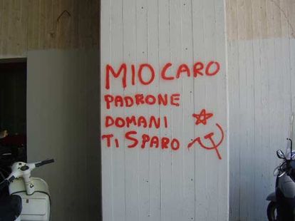Chi ha imbrattato i muri del Comune ? La sigla parla chiaro e tondo. Nella notte qualcuno ha pensato di usare lo spray rosso (anche qui una firma politica ben distinta) per esprimere il suo parere sull'avversione per i datori di lavoro chiamati padroni.