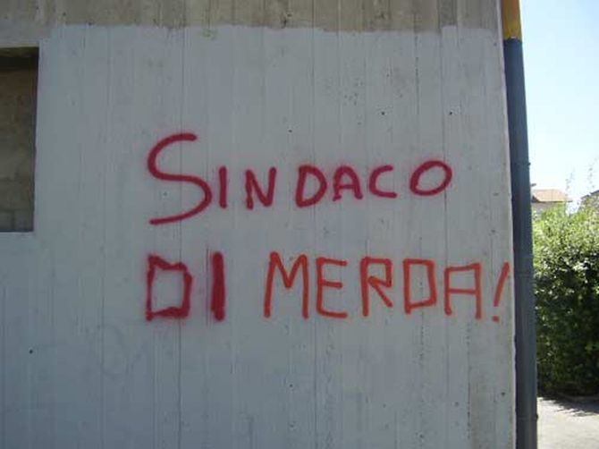 Protesta rossa sui muri del Comune.