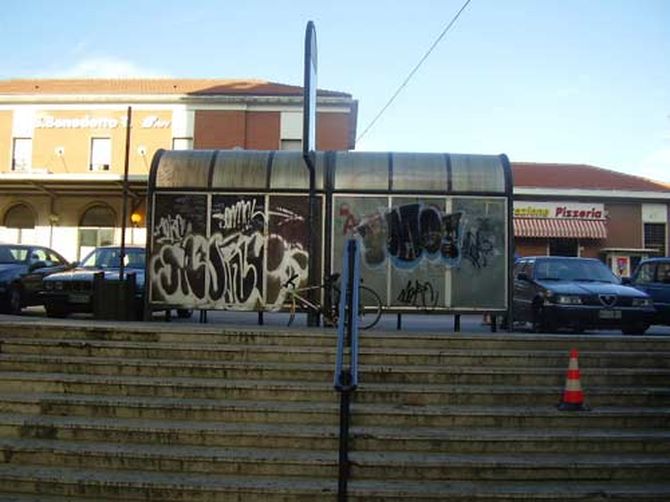 Pulmann in parcheggio selvaggio con motori accesi anche in un momento di sosta più o meno lunga. Macchine in manovre sempre più fantasiose a discapito di passanti e persone in attese di altri mezzi. E c'è da aggiungere la presenza in aumento costante e continuo di elementi di vario genere che hanno eletto la stazione a “centro sociale”.