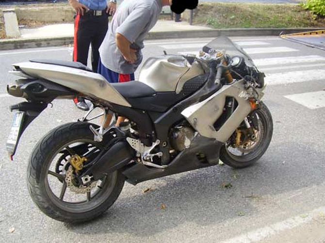 L'altro invece, sarebbe stato letteralmente sbattuto in aria insieme alla moto cadendo una decina di metri più in là sull'asfalto. La moto, una Kawasaki modello "Ninja" da 600 cc, ha proseguito sul selciato invadendo la corsia opposta per fermarsi a quasi 75 metri dal luogo dell'impatto.