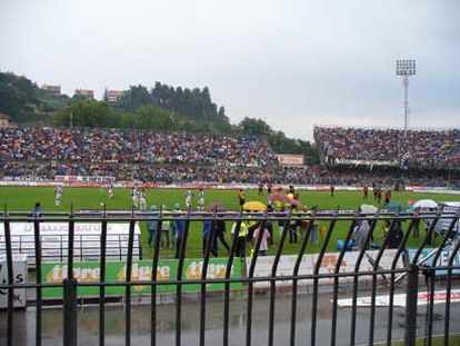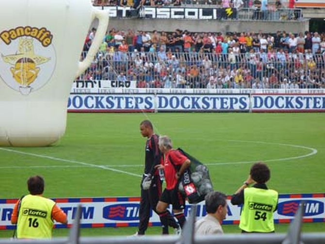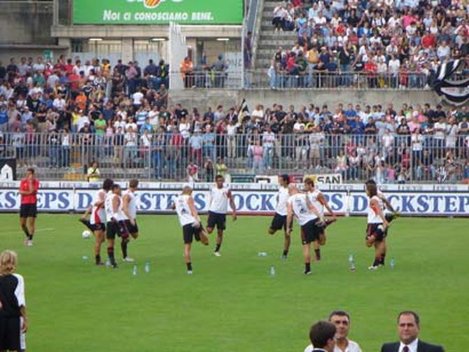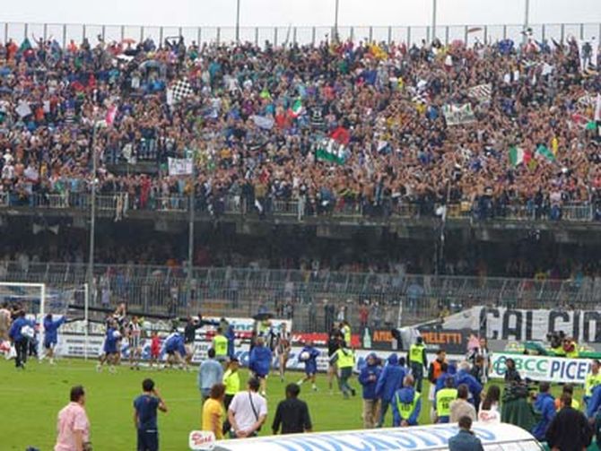 Ascoli vestita a festa ha aspettato nei giorni scorsi lo stellare Milan. Tutto è sembrato filare per il meglio dal punto di vista organizzativo. Biglietti tutti esauriti. Stadio quasi pieno già due ore prima del fischio dinizio. Solo la pioggia cominciata cadere circa mezzora prima della gara ha rovinato un po latmosfera. Il terreno di gioco, quindi, è apparso notevolmente appesantito tanto che le squadre appena scese in campo han faticato non poco a far girare il pallone.