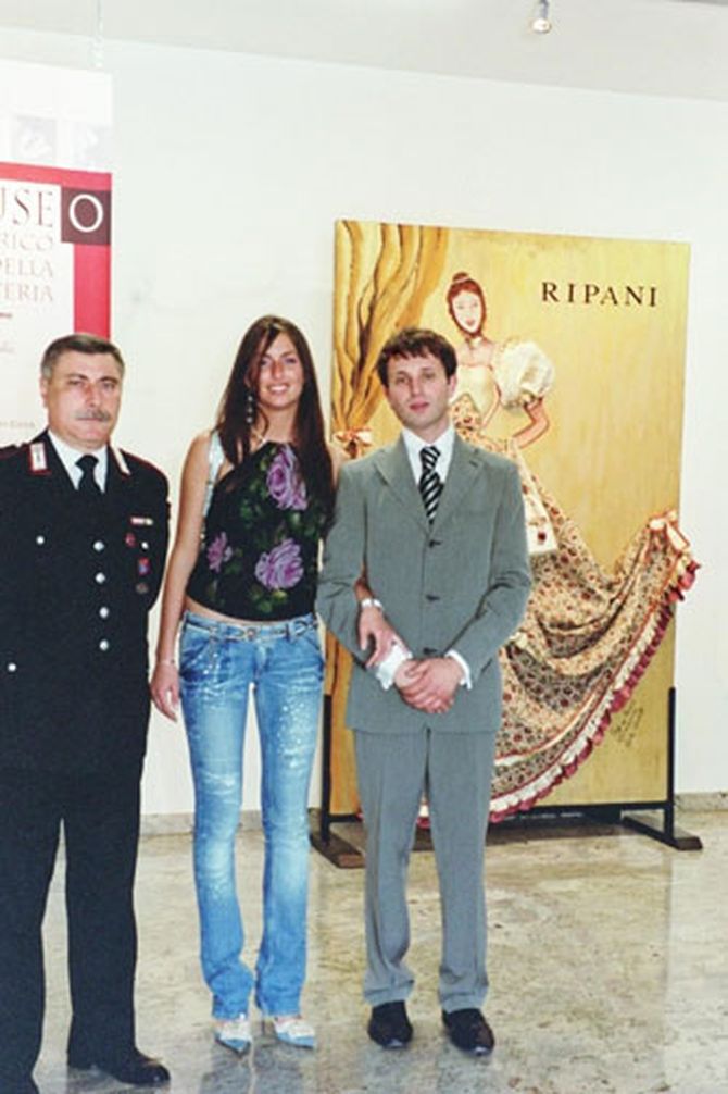 miss tutte d'oro -Giulia Angelosante al centro con la borsa di oro zecchino al museo pelletteria Ripani