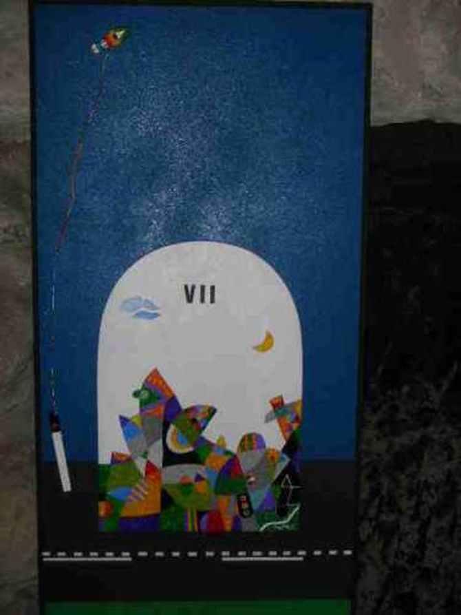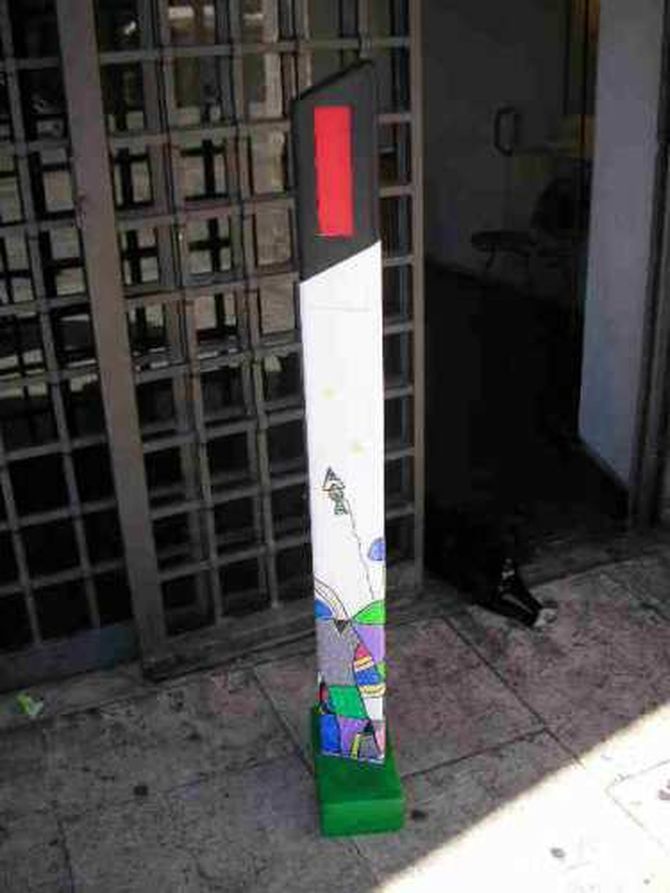 Le Pietre miliari lo sono nel vero senso della parola, ma sono in grisel, spiega la curatrice della mostra, un materiale sintetico, che Caggiano ha inciso e dipinto con colori acrilici. I suoi soggetti preferiti sono paesaggi campestri o urbani, disegnati con linee geometriche ad incastro, colorate con tonalità vive e accese, come quelle dei giocattoli. Infatti la dimensione ludica è fondamentale nelle opere dellartista, la cui arte è contemporaneamente concreta e astratta, istinto e fisicità. Ciò è confermato anche dalla presenza nella mostra delle Sculture semoventi, oggetti artistici di legno assemblati a formare un gioco, che può essere modificato anche dal pubblico, rigenerato e reinventato in continuazione.