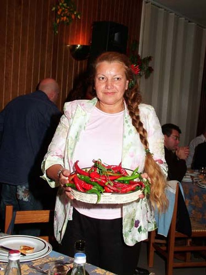 Una serata che ha visto eccezionalmente la presenza della neo campionessa italiana mangiatrice di peperoncino, Cristina Radulescu, professoressa universitaria di francese ed arabo di Pavia, che ha conquistato il titolo italiano lo scorso settembre a Diamante (CS), sede centrale dell’Accademia del peperoncino, mangiando la bellezza di 540 grammi di “diavolicchio”.