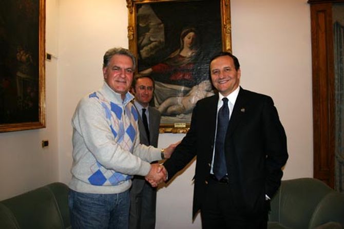 Il ministro Baccini con il sindaco Celani. In secondo piano il Presidente della Fondazione Carisap Marini Marini