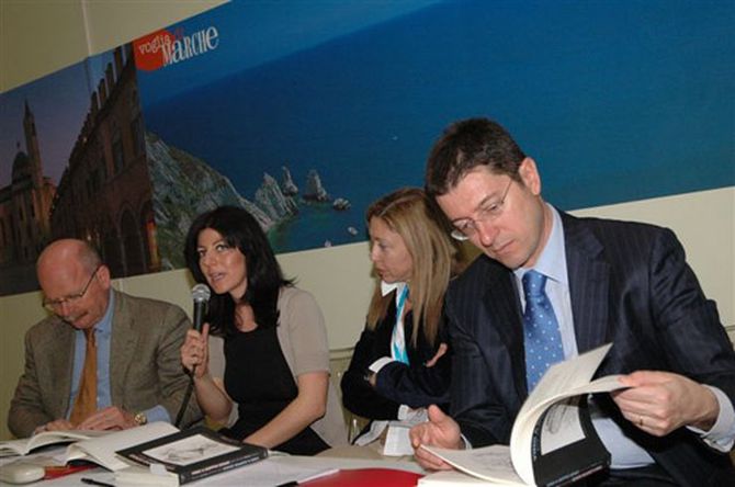 All’interno dello stand della Regione Marche, l’assessore regionale allo Sviluppo rurale e all’Alimentazione, Paolo Petrini, ha partecipato alla presentazione del libro: “Vino a doppio senso” di Stefania Zolotti e Leonardo Cemak. Un libro singolare sul vino, descritto attraverso 31 interviste a noti personaggi, maschili e femminili, delle Marche: Neri Marcorè, Giuseppe Piccioni, Dante Ferretti, Cesare Paciotti, Donatella Girombelli.