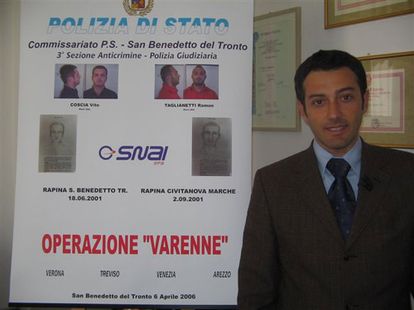 L'ordine di carcerazione è stato emesso dalla Procura presso il Tribunale di Ascoli ed è stato eseguito in collaborazione con la polizia di Battipaglia. Le indagini erano scattate nel 2001, in seguito alla rapina effettuata ai danni dell'Agenzia Snai di San Benedetto del Tronto, dove erano riusciti a sottrarre 75milioni di vecchie lire,  tra contanti e oggetti di valore sottratti al titolare e a quella di Civitanova Marche per un bottino di 67 milioni sempre di vecchie lire