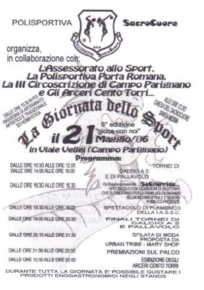 A pensare ed organizzare tutte queste attività è la Polisportiva Sacro Cuore che ha avuto la collaborazione e ringrazia l’Assessorato allo Sport Comunale, nelle persone soprattutto di Nico Stallone e del prof. Sandro Marcantoni, la Polisportiva Porta Romana del presidente Ercole Velenosi, la III Circoscrizione di Campo Parignano soprattutto nelle persone di Marianna Marcucci ed Alessandra Pierannunzi, la I Circoscrizione Centro Sotorico nelle persone di Claudio Tempera e Michele Antonelli; non ultimo il Parroco del Sacro Cuore Don Emidio Rossi.