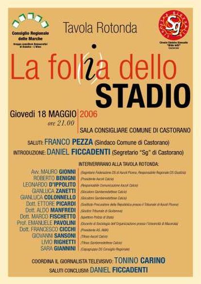 Nella Tavola Rotonda da noi intitolata “La Foll(i)a dello Stadio”, abbiamo voluto invitare sia Magistrati che Giocatori, sia Presidenti che Autorità, sia componenti della polizia di Stato che Tifosi, sia Giornalisti che Docenti Universitari, tutto questo per capire e per cercare di rimediare alla violenza e per far si che lo Stadio, il calcio e lo sport rimangano le metafore più belle che le nostre emozioni possano conoscere.