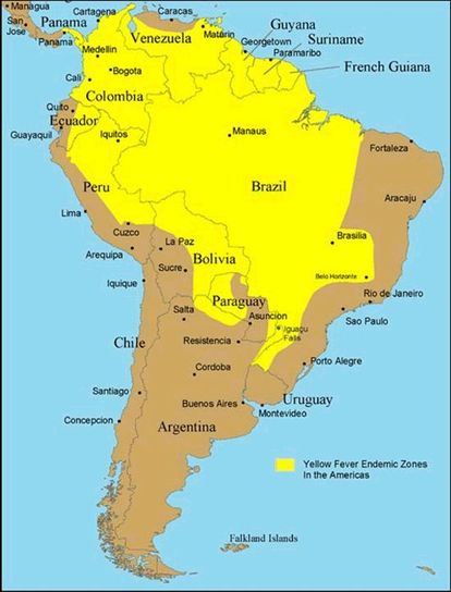 Zone dell'America Latina dove la Febbre Gialla è endemica