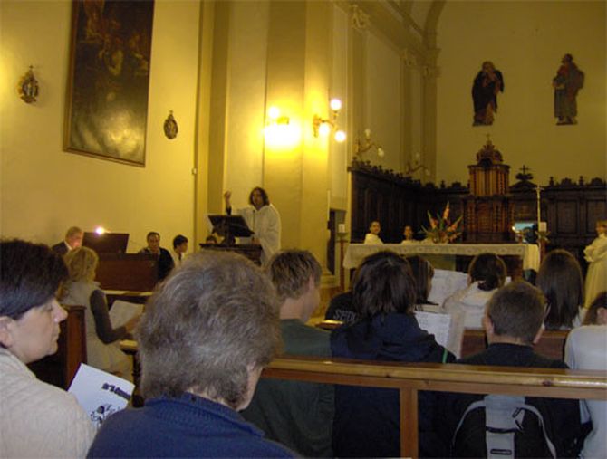 San Benedetto del Tronto | al Santuario di San Giacomo della Marca con cartelloni e strisce tracciava, i diversi volti della speranza: Pace, Rispetto dellAmbiente, Salute fisica, Amicizia, Legalità, Convivenza democratica, Partecipazione e Fede .