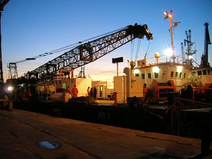 Il rimorchiatore che traina l'attrezzatura sta in questo momento navigando a piena forza (4 nodi circa) e si prevede che verso le una o al più tardi le due di lunedì 6 novembre si trovi nelle vicinanze del punto indicato del naufragio ovvero a 18 miglia circa al largo di Porto San Giorgio (latitudine: 43'-12' - longitudine : 14' 15). Una volta sul posto si aspetteranno le prime luci dell'alba per iniziare immediatamente le ricognizioni con il ROV (Robottino) sottomarino per far sì che il pontone possa posizionarsi esattamente al di sopra del relitto.