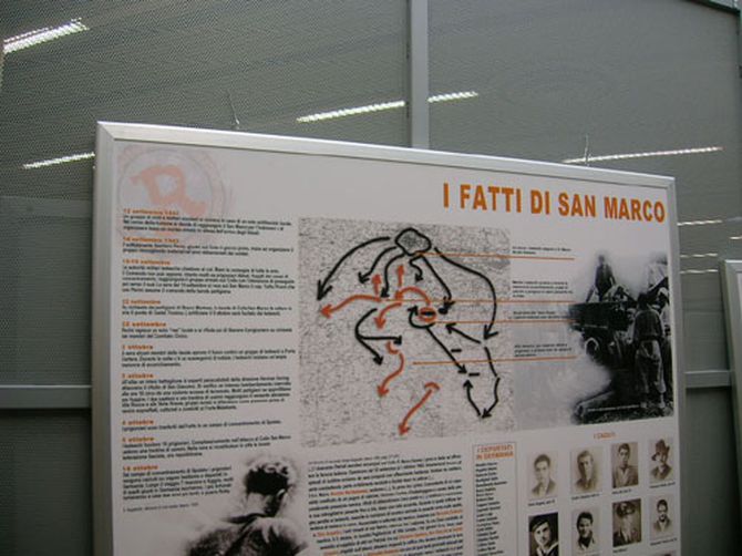 Pannelli che documentano l’avvento del fascismo in Italia, la Resistenza, i “fatti” ad essa legati, a San Marco e altrove. Nella sala consiliare del Comune viene inoltre proiettato un filmato, realizzato dagli stessi autori dei pannelli, della durata di circa dieci minuti.
