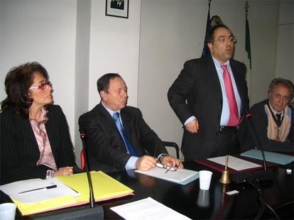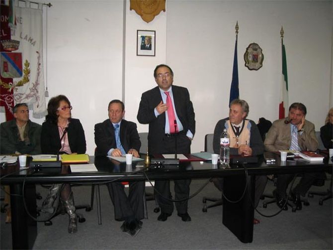Rossini, Agostini, Re, e al centro segretario comunale Castel di Lama