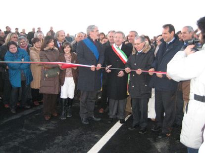 Sul palco delle autorità, con il presidente della Provincia Massimo Rossi e il sindaco di Monsampolo Remo Schiavi, c’erano il sottosegretario agli affari regionali Pietro Colonnella (che, come presidente della Provincia, ha seguito la complessa vicenda burocratica legata alla realizzazione della strada), l’attuale vicepresidente della Provincia Emidio Mandozzi, l’assessore alla viabilità Renzo Offidani e il vescovo della diocesi di Ascoli mons. Silvano Montevecchi.