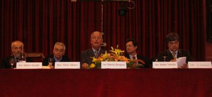 Convegno di Oncologia dello IOM: da sx il dr. Stefano Gastaldi, mons. Vinicio Albanesi, il dr. Maurizio Bonsignori, il dr. Stefano Ventrella, il dr. Gabriele Corradini