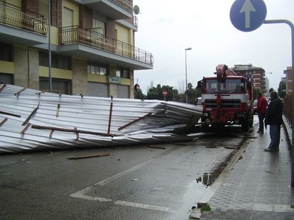 Vento da 25 nodi sradica e catapulta tettotia di 80 metri quadri in Via Volta