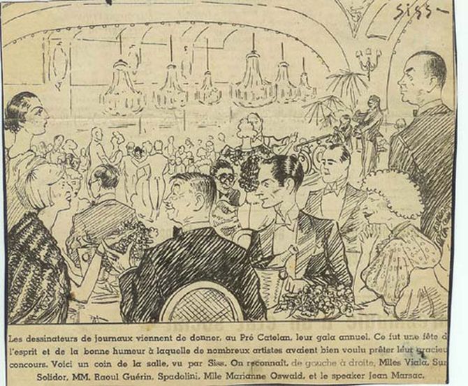I quotidiani degli anni ’30 pubblicano spesso disegni raffiguranti Spadolini. A volte egli appare in compagnia di Suzy Solidor, la chiacchierata cantante di “Lili Marlen” immortalata da Tamara de Lempicka in uno dei suo famosi dipinti; altre volte è con Marianne Oswald, la cantante di cabaret di origine tedesca fuggita dalla Germania con l’ascesa al potere di Hitler, celebre per aver portato sul palcoscenico i testi di Bertold Brecht, Jean Cocteau e Jacques Prévert.