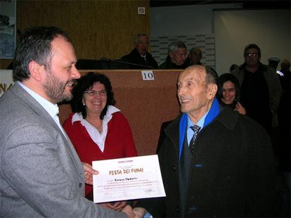 Emidio Perotti premiato dal sindaco Giovanni Gaspari