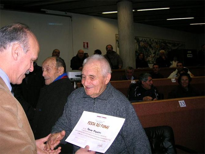 “Li fenare”. Erano tutti lì ieri mattina. Qualcuno con le proprie forze, altri appoggiandosi ad un bastone o sorretto da qualche famigliare. Nessuno vuol far sentire la sua assenza soprattutto a testimonianza ed a ricordo di quelli che non ci sono più. In una sala consigliare gremita i “frechì de la rote” di una volta passano simbolicamente il testimone ad altri ragazzi della terza media venuti dalla vicina scuola Curzi.