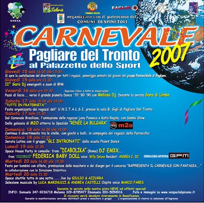 Infatti il programma è stato completato, coniugando tutti i tipi di musica dal liscio all’house, per le serate danzanti ed allargando lo spazio per i bambini nel pomeriggio,con l’animazione dei ragazzi della parrocchia. Il tutto presso il Palazzetto per lo Sport di Pagliare mascherato da una scenografia spaziale
