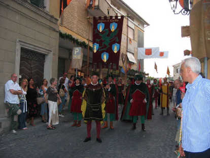 La Delegazione, composta da 60 elementi, guidati dal capo sestiere Enrico Fiori ha preso parte al corteo della rievocazione storica di quella cittadina, strappando applausi a iosa alla grande folla assiepata ai lati delle strade, sia per la compostezza e la fierezza dei personaggi sia per i curatissimi costumi ed insegne.