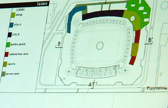 Presentato alle 18:30 di Giovedi 21 febbraio il progetto per lo stadio. Riunite congiuntamente le commissioni consiliari per l'urbanistica e il bilancio, con i consiglieri comunali di maggioranza e opposizione.
