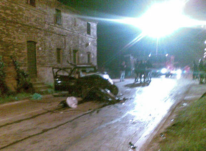 L'auto distrutta dall'incidente lungo la strada Faleriense