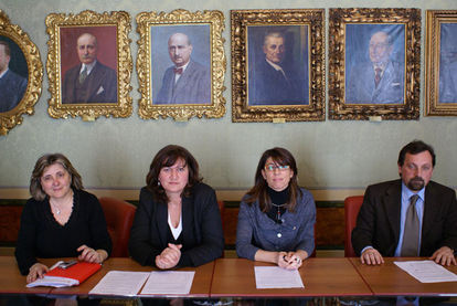 Un momento della conferenza stampa per illustrare il consuntivo del primo anno di attività del servizio di mediazione culturale e linguistica in ambito sanitario a favore degli immigrati presenti sul territorio coordinato dallAmministrazione Provinciale e finanziato dalla Fondazione Carisap in collaborazione con le ASUR 12 e 13