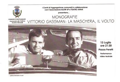 L'Assessorato alle Politiche Giovanili e Sociali del Comune di Grottammare, i Centri di Aggregazione Comunali e l'Associazione Culturale Blow Up dedicano due giorni di teatro e cinema a Vittorio Gassman, a dieci anni dalla sua scomparsa.