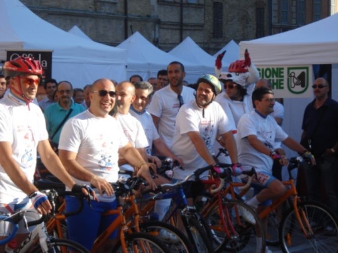 Sulla linea di partenza: per Offida, il Sindaco Valerio Lucciarini e il Vicesindaco Piero Antimiani; per la Provincia di Ascoli Piceno, il Consigliere Sergio Corradetti; per San Benedetto del Tronto il Sindaco Giovanni Gaspari; per Grottammare l'Assessore ai servizi sociali Daniele Mariani; per Castorano il delegato allo sport Graziano Fanesi; per Acquaviva l'assessore al bilancio Andrea Infriccioli; per Castignano il Sindaco Domenico Corradetti; per Castel di Lama il Vicesindaco Alessandro Corradetti; per Appignano il Vicesindaco Pierluigi Grelli; per Rotella il Sindaco Domenico Gentili. E ancora: il Presidente della CNA e Vicepresidente della Camera di Commercio Gino Sabatini, il Vicepreside dell'ISC "G. Ciabattoni" di Offida Giannino Damiani, e il parroco della Collegiata Padre Sebastian. Immancabile, a bordo della sua inseparabile bicicletta, la mascotte "Ciclone".