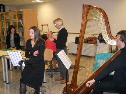 Alle cinque della sera, in biblioteca l'atmosfera è sospesa e rarefatta, gli sguardi assorti cullati dall'arpa dolce di Marco Allevi, mentre la voce morbida di Pamela Olivieri schizza luoghi pieni di luce e pensieri intensi.